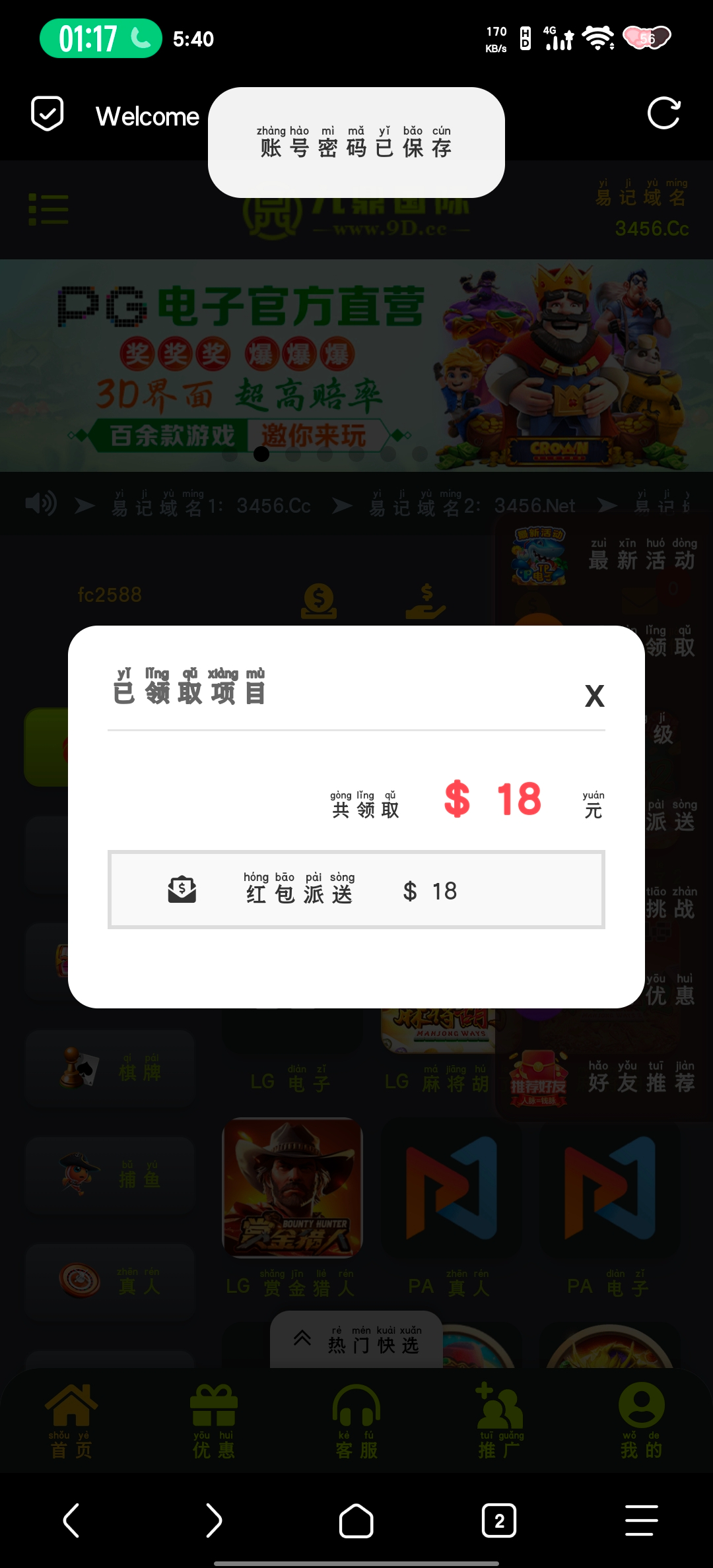 电话回访,登录弹出来直接领18