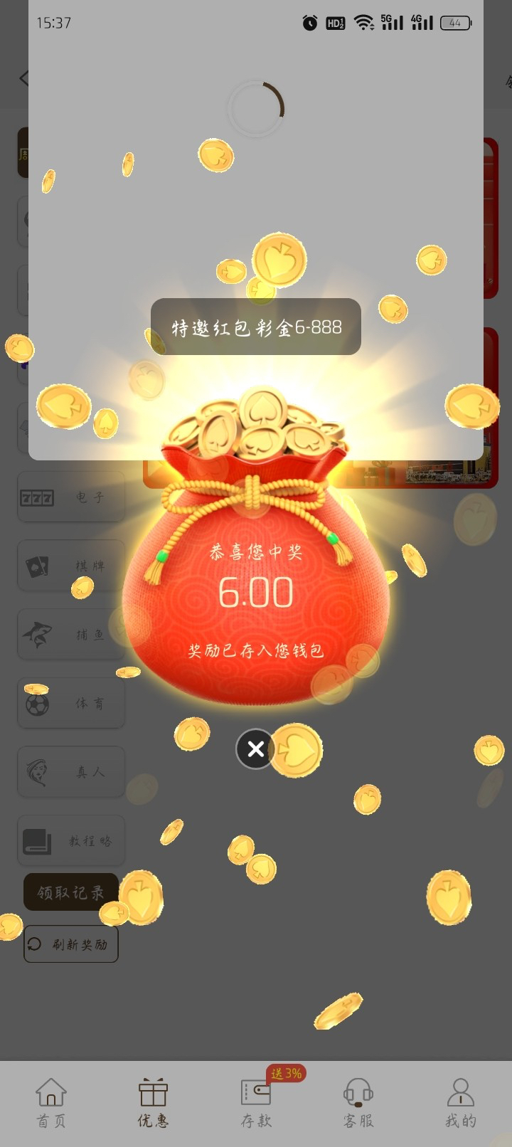 接到电话的注册特邀的话会跳转有个福利袋,领了6块,可以去碰碰