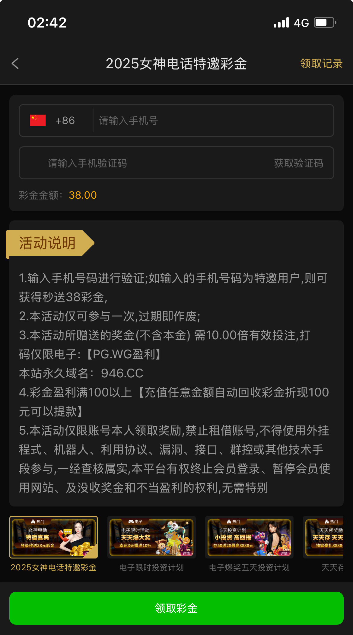 白嫖彩金