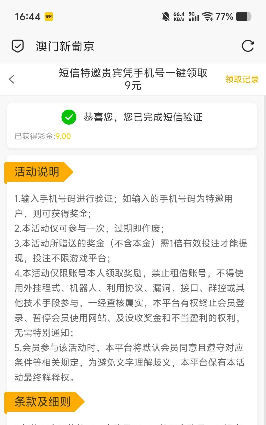 给我打电话说送彩金,然后验证手机号送了9,还有个特邀送20期的我申请了被拒绝了,老哥们可以试试网址